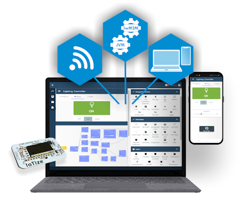 Create professional user interfaces as apps with minimum effort and no expertise. Our no-code / low-code design tools speed the creation of dashboards that you build into iOS and Android apps with just the click of a button. Our ecosystem includes app creator and builder, free hardware configuration environment, java coding and debugging tools.